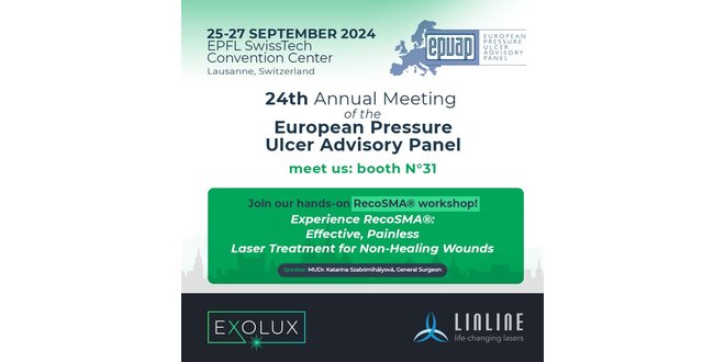 06.10.2025Médical Japon Tokyo 2025 24.09.2025Première utilisation clinique de RecoSMA® à l'hôpital Farwaniya au Koweït 12.06.2025LINLINE au Congrès 2025 de l'AIME à Paris 10.06.2025Collaboration avec l'Université Complutense de Madrid 02.06.2025RecoSMA : Nouvelle publication clinique 20.03.2025EWMA 2025, Barcelone 23.01.2025Santé arabe 2025 25.09.2024Merci d'avoir visité LINLINE à MEDBALTICA 2024 20.09.2024L'arrivée des superbactéries automatisées 19.09.2024Groupe consultatif européen sur les escarres 11.09.2024MEDBALTICA 2024 25.04.2024EWMA 2024 03.02.2024Journées Cicatrisations 2024 21 - 23 janvier au Palais des Congrès de Paris 03.11.2023Rendez-vous à MEDICA 2023 Düsseldorf, Allemagne, 13-16 novembre 2023 18.10.2023Traitement au laser de l'ulcère diabétique Journal du soin des plaies 02.10.2023CONFÉRENCE MONDIALE SUR LES PLAIES 2023 07.09.202319ème Congrès BADV 14-16 septembre 2023 20.04.2023Rendez-vous à l'EWMA 2023 La 33e conférence de l'Association européenne du traitement des plaies 23.10.2022Rendez-vous à Medica 2022 Düsseldorf, Allemagne, 14-17 novembre, 2022 05.09.2022Traitement des plaies chroniques Показать ещё