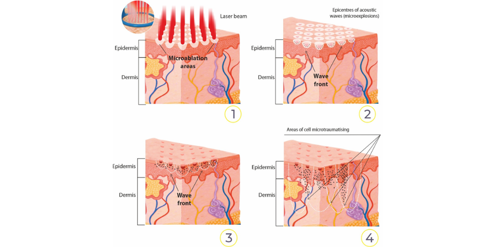 Les études histologiques montrent qu'il n'y a pas de nécrose de coagulation ni de formation de fibrose. Au contraire, le tissu est remplacé par du nouveau collagène et des structures saines, avec une amélioration de la microcirculation et du trophisme.